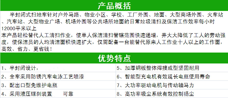 產(chǎn)品分類:駕駛式掃地機(jī)產(chǎn)品特點(diǎn):1、駕駛式掃地機(jī)1580特別配備出口型免維護(hù)電瓶,區(qū)別于市面上其他電動(dòng)掃地機(jī),其智能型充電機(jī)能有效延長(zhǎng)電瓶使用壽命,可使連續(xù)工作時(shí)間更長(zhǎng)。2、底部主刷和兩側(cè)邊刷可自由調(diào)節(jié)高度使清掃效率更高,完成1000㎡的地面清掃工作僅需6分鐘。3、操作簡(jiǎn)單、使用方便,工作人員無(wú)需特別培訓(xùn),“保安大叔也能輕松操縱自如”。4、配備高功率吸塵系統(tǒng)有效控制揚(yáng)塵,特有的灑水降塵功能還可以在進(jìn)行清掃地面工作的同時(shí)灑水以達(dá)到降塵作用。適用環(huán)境:物業(yè)、工廠車間、車站機(jī)場(chǎng)、停車場(chǎng)、廣場(chǎng)、市政單位、醫(yī)院、學(xué)校、大型商場(chǎng)等。